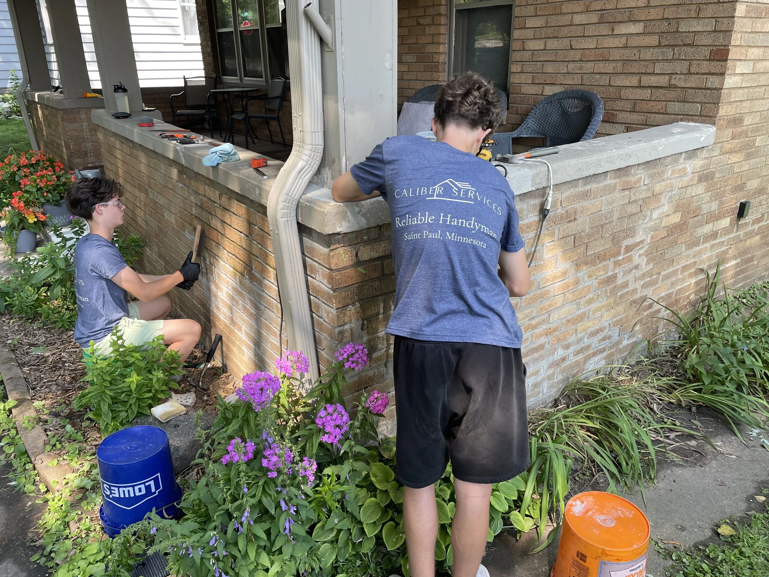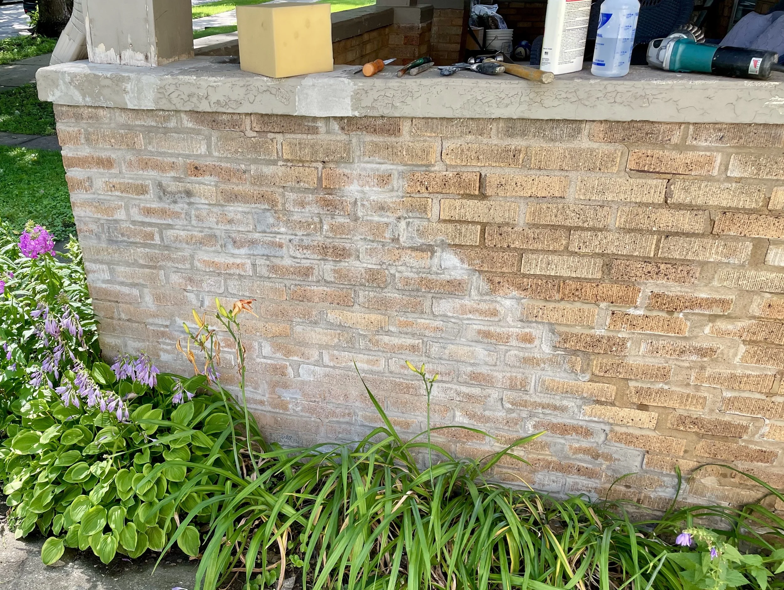 This porch had been left with poorly repaired, cracked mortar after work by another contractor who refused to correct the issue. Caliber was brought in to restore and improve the finish—resulting in a clean, durable, and professional repair.